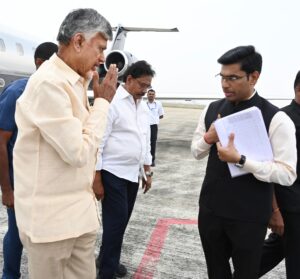 తిరుపతి జిల్లా పర్యటనకు రేణిగుంట విమానాశ్రయం చేరుకున్న రాష్ట్ర ముఖ్యమంత్రి నారా చంద్రబాబు నాయుడు