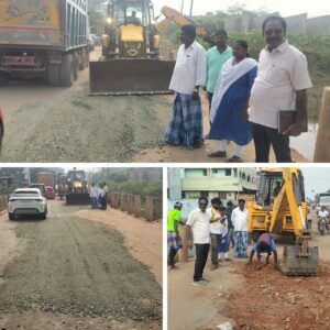 డిప్యూటీ తహసిల్దార్ వెంకటసుబ్బయ్య గారికి ఆదేశించి రెవెన్యూ సిబ్బందితో కలిసి వెంటనే రోడ్డు తాత్కాలిక మరమ్మత్తులు చేయాలని ఆదేశించడంతో రోడ్డుకు మరమ్మతులు చేపట్టిన dt వెంకటసుబ్బయ్య…