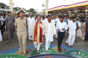 *జిల్లా ఎస్పీ శ్రీ హర్షవర్ధన్ రాజు, ఐ.పి.ఎస్. గారుతో పాటు ఈవో గారు శ్రీ సి జే. శ్యామలరావు, ఐఏఎస్ గారు, జె ఈ ఓ శ్రీ వెంకయ్య చౌదరి ఐఏఎస్ గారు, మరియు శ్రీ మణికంఠ చందోలు ఐపీస్ CV&SO మాఢ వీధులలో తిరుగుతూ పరిశీలించారు.*