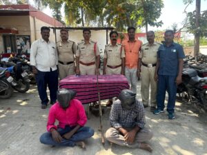 వివరాలు నిన్నటి దినం అనగా 05.02. 2025 వ తేదీ 3PM గం. బంగారుపాలెం మండలం KM కండ్రిగ గ్రామ సమీపంలో K.గోపి వయస్సు 29 సంవత్సరాలు s/o G. ఉపేంద్రన్ ఇతని ఊరు విలుదోశ పాలెం పాల్యం. గుడియాత్తం తమిళనాడు రాష్ట్రం అలాగే L. ఆనంద వయస్సు 30 సంవత్సరాలు s/o లోకనాథ KM. కండ్రిగ విలేజ్ బంగారుపాలెం మండలం ఇరువురు అడవి పందులను మరియు ఇతర జంతువులను వేటాడడం కోసం కేఎం ఖండిక గ్రామ సమీపంలో నాటు తుపాకిని తీసుకు వెళుతూ ఉండగా సమాచారం తెలిసిన బంగారుపాళ్యం ఇన్స్పెక్టర్ తన సిబ్బందితో కలిసి పై తెలిపిన ఇరువురిని అరెస్టు చేసి ఈ దినం రిమాండ్ కు తరలించడం అయినది