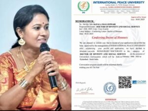 ✍️ *ఇంటర్నేషనల్ పీస్ యూనివర్శిటీ నుండి డాక్టరేట్*