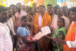 అనంతరం ఇల్లు లేని పేద ప్రజలకు ఇంటి పట్టాలను ఎమ్మెల్యే కోనేటి ఆదిమూలం చేతులు మీదుగా పంపిణీ చేశారు. అలాగే గ్రామంలోని భూ సమస్యలను రెవెన్యూ అధికారుల ద్వారా పరిష్కరిస్తామని హామీ ఇచ్చారు.
