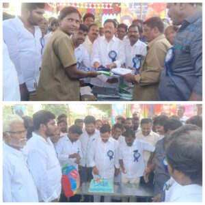 అనంతరం డాక్టర్ బి.ఆర్ అంబేద్కర్ పుట్టినరోజు కేక్ ను ఎమ్మెల్యే కట్ చేసి అందరికీ పంచిపెట్టి సంబరాలు చేసుకున్నారు.