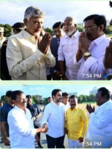 తిరుమల శ్రీ వెంకటేశ్వరస్వామి బ్రహ్మాత్సవాలు పురస్కరించుకొని శ్రీ వారికి పట్టు వస్త్రాలు సమర్పణ కోసం కుటుంబ సమేతంగా విచ్చేసిన రాష్ట్ర ముఖ్యమంత్రి నారా చంద్రబాబు నాయుడును ఎమ్మెల్యే కోనేటి ఆదిమూలం బుధవారం రేనుగుంట విమానాశ్రయంలో మర్యాదపూర్వకంగా కలిసి సాదర స్వాగతం పలికారు