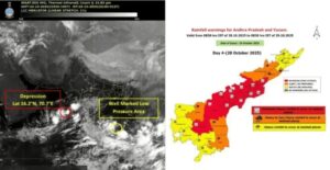 *‘‘మొంథా’’* గా పిలిచే ఈ తుపాను కాకినాడ సమీపంలో 28వ తేదీ సాయంత్రం తరువాత తీరం దాటుతుందని ఏపీ విపత్తుల నిర్వహణా సంస్థ తెలిపింది.