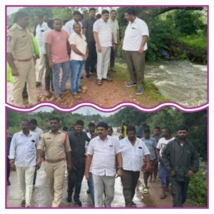 విఆర్ కండ్రిక వద్ద దెబ్బతిన్న మినీవంతెనను పరిశీలించిన శంకర్ రెడ్డి.